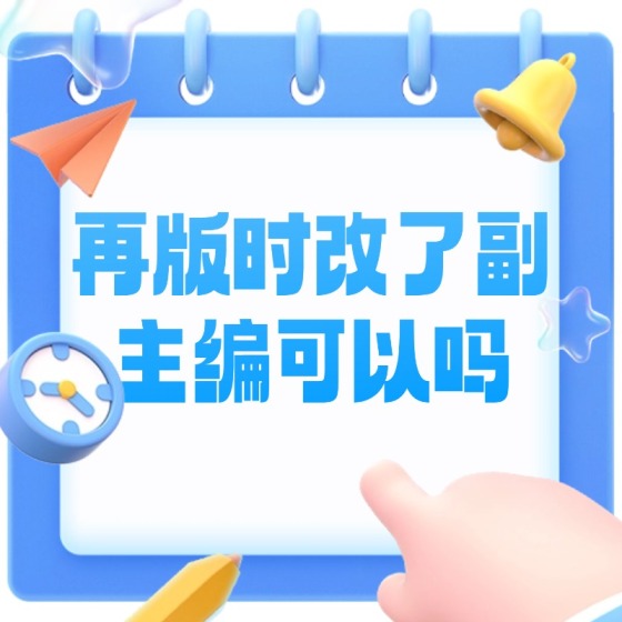 再版时改了副主编可以吗 再版时改了副主编可以吗?可以的,再版要重新申请书号,要重新提交书号相关的信息,那么就可以修改副主编了,想添加或者修改副主编都是可以的。